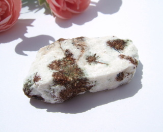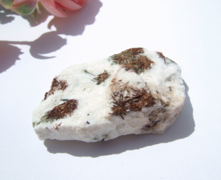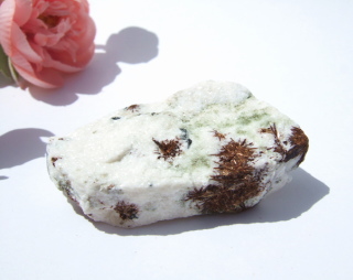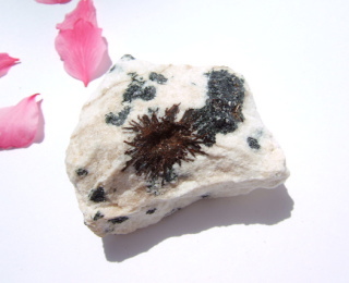 ところどころに針状で艶やかな黒い鉱物、